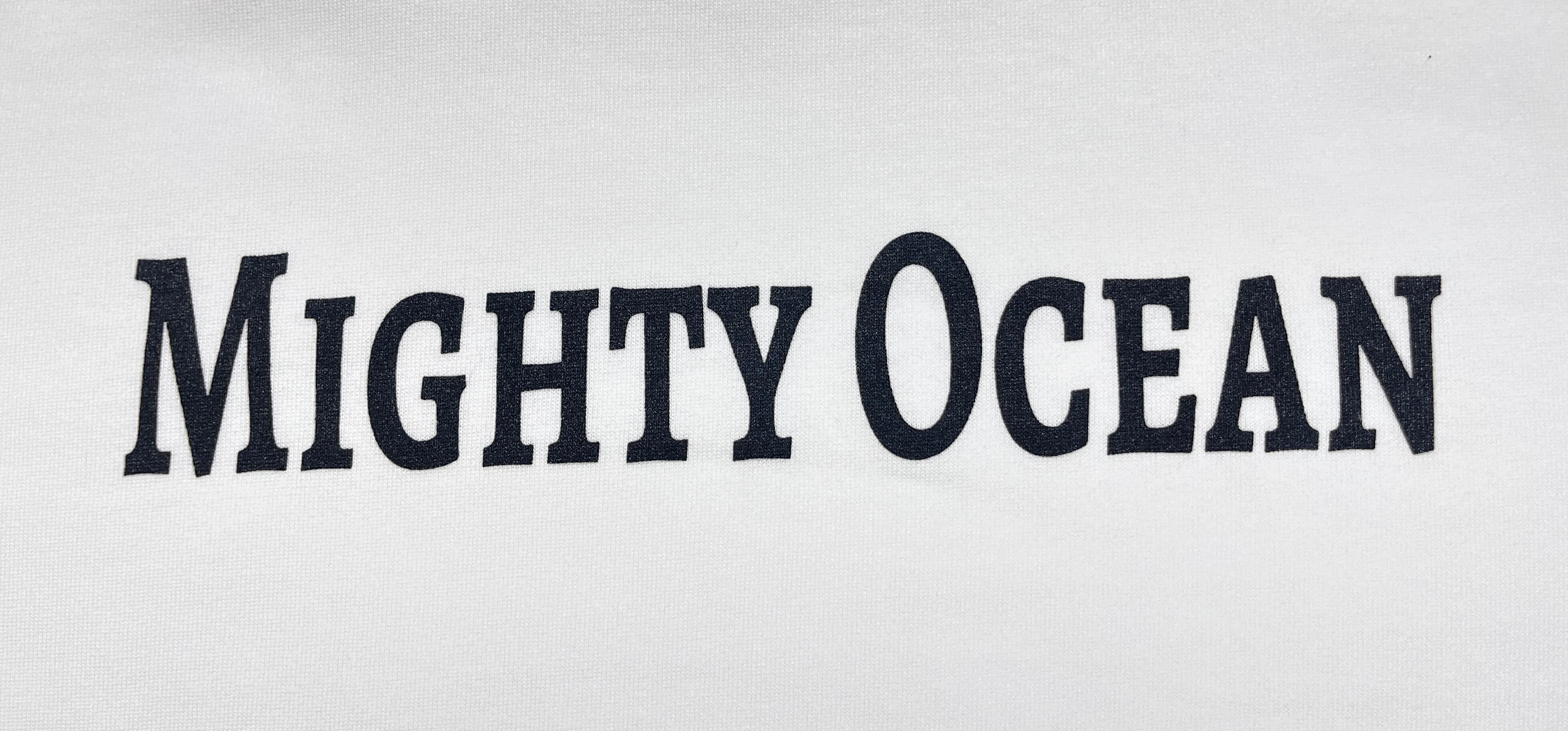 フロント左裾とバック中央にシンプルなテキストロゴをプリント。