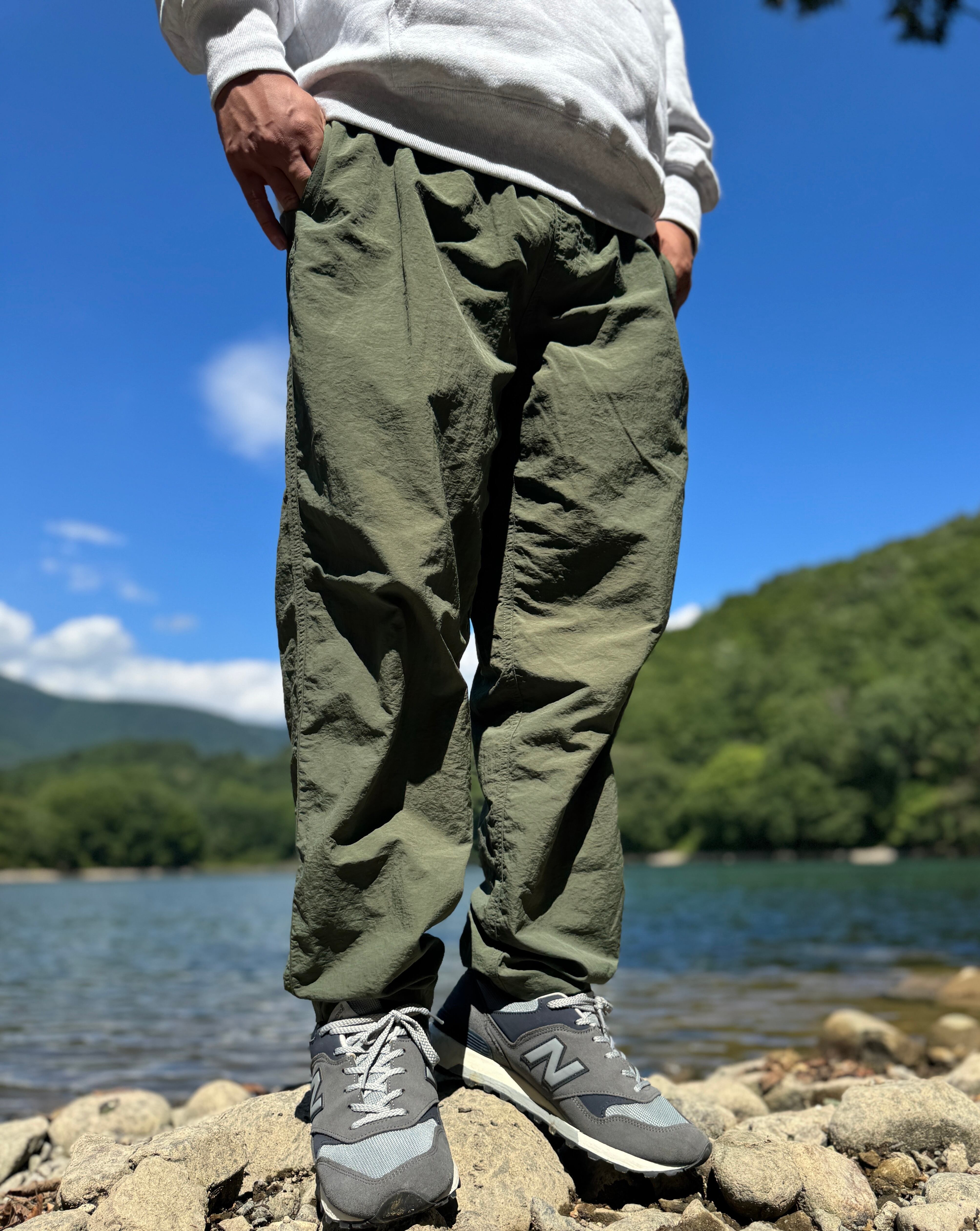 タウンユースもアウトドアユースもオールマイティに使える万能ナイロンパンツ。